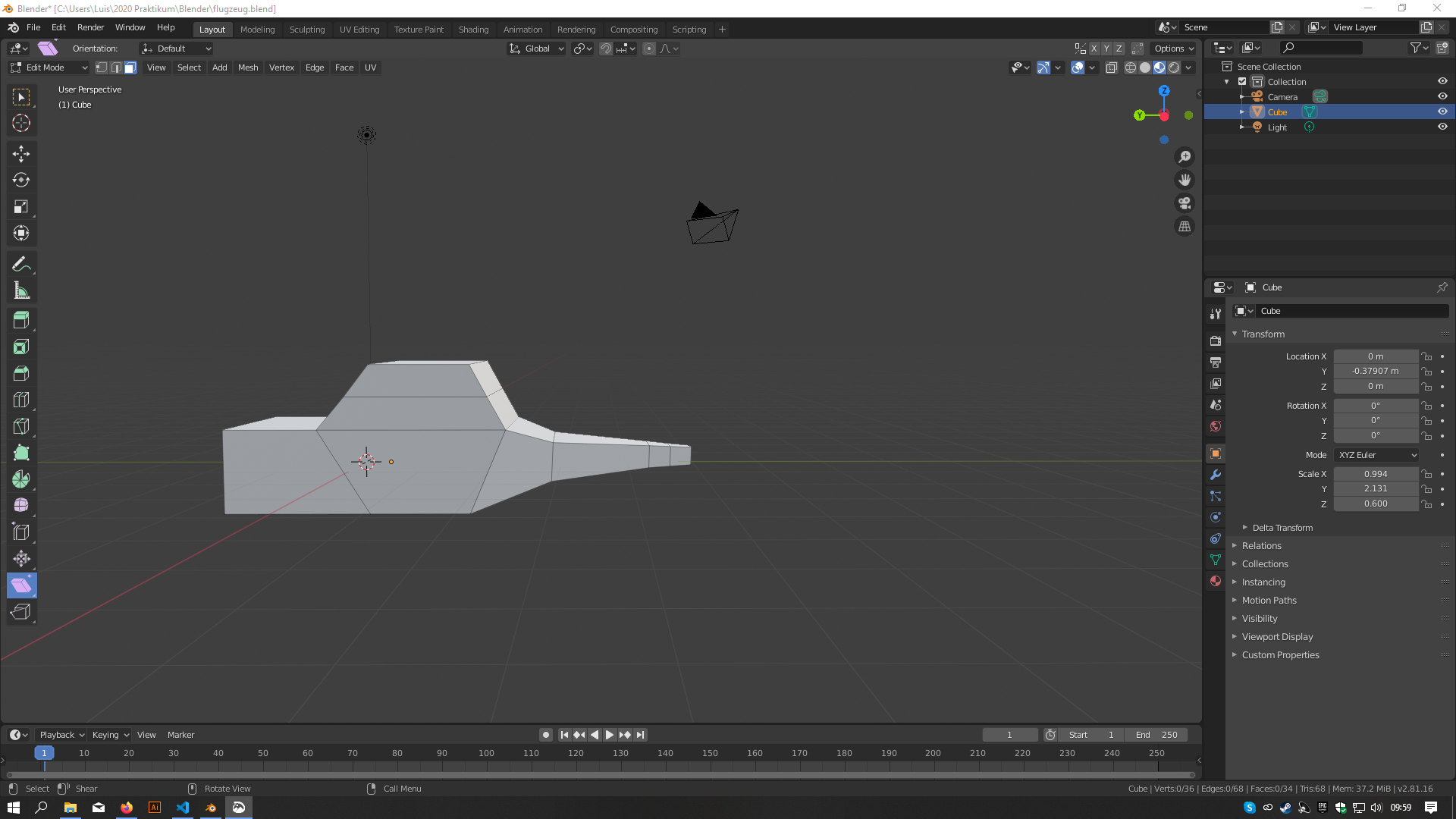 Heute habe ich mit einer Anleitung den Anfang eines Flugzeugs gebaut, was noch nicht nach einem aussieht, aber sehr viel Zeit in anspruch genommen hat. Ich musste das Projekt drrei mal neue starten, weil es nicht funktioniert hat, wie ich es wollte und nicht wusste, wie man es rückgänging macht.
